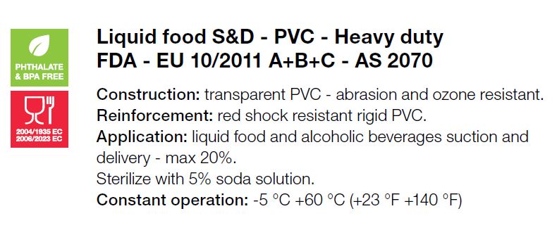 Alfagomma, PVC zuig -en persslang voor levensmiddelen - Rode harde PVC spiraal, 120 mm - 4 3/4", afname per mtr., type 468OH