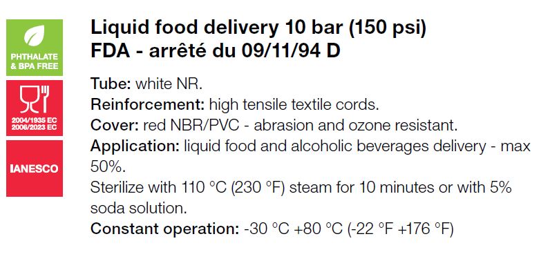 Alfagomma, Persslang voor levensmiddelen, Textielinlagen - 10 bar, FDA, 19 x 31 mm - 3/4", afname per mtr., type 452LH