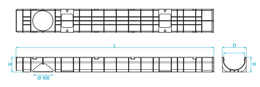 De goten zijn vervaardigd uit polypropyleen goot / onderbak / geul en afgedekt met uitneembaar volbad verzinkt stalen sleuven rooster (sleuven B = 10 mm).[/br]