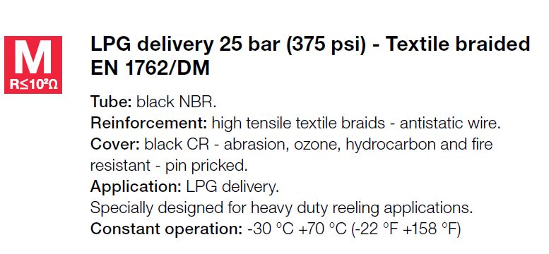 Alfagomma, LPG persslang, Textielinlagen met antistatische draad - 20 bar, 25 x 38 mm - 1", afname per volle rol, 40 mtr., type 659AA