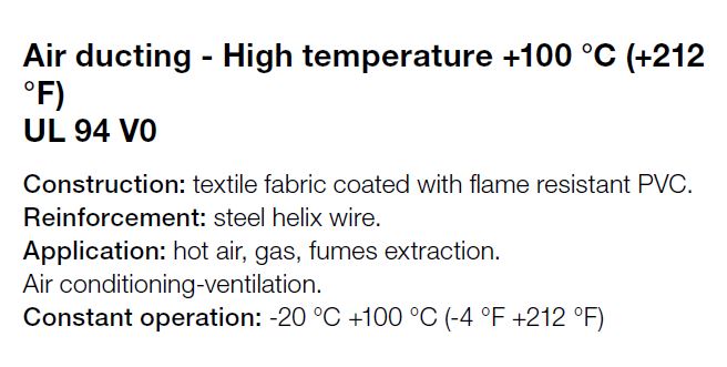 Alfagomma, Lucht afzuigslang, voorzien voor gebruik bij hoge temperaturen - type 174BB, Stalen spiraaldraad, 90 mm - 3 1/2", afname per mtr.