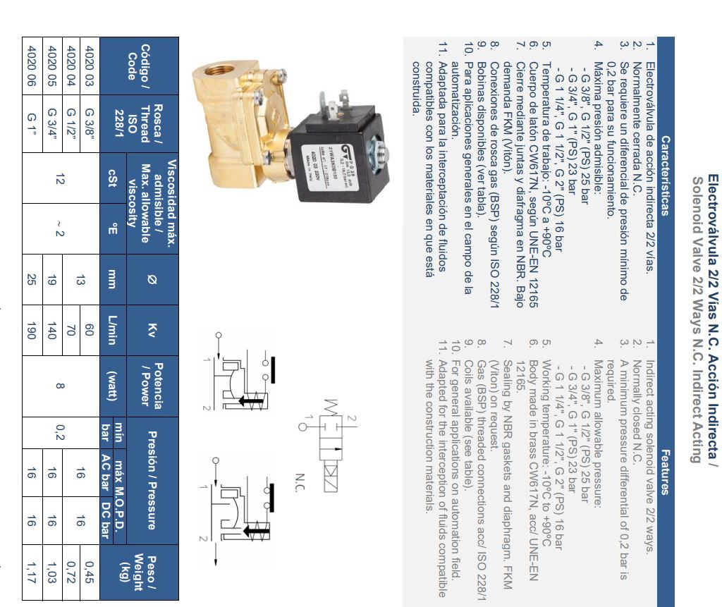 Genebre messing 2/2 weg indirect gestuurde membraanafsluiter normaal gesloten (NC) serie 4020 magneet spoel gestuurd