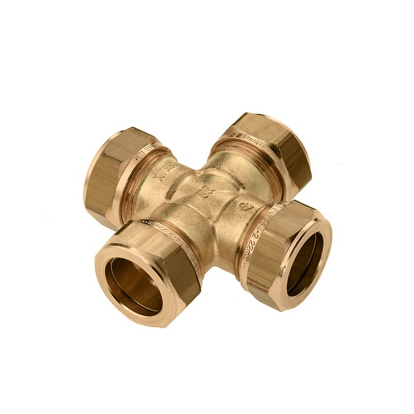 Bonfix Messing knelfitting, Kruisstuk, 4 x knel, 22 x 15 x 22 x 15 mm, KIWA en Gastec keur