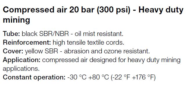 Alfagomma, compressed air 20 bar havy duty mining - Textielinlage (high tensile textile cords), 19 x 31 mm - 3/4", afname per volle rol, 61 mtr., type 151AK