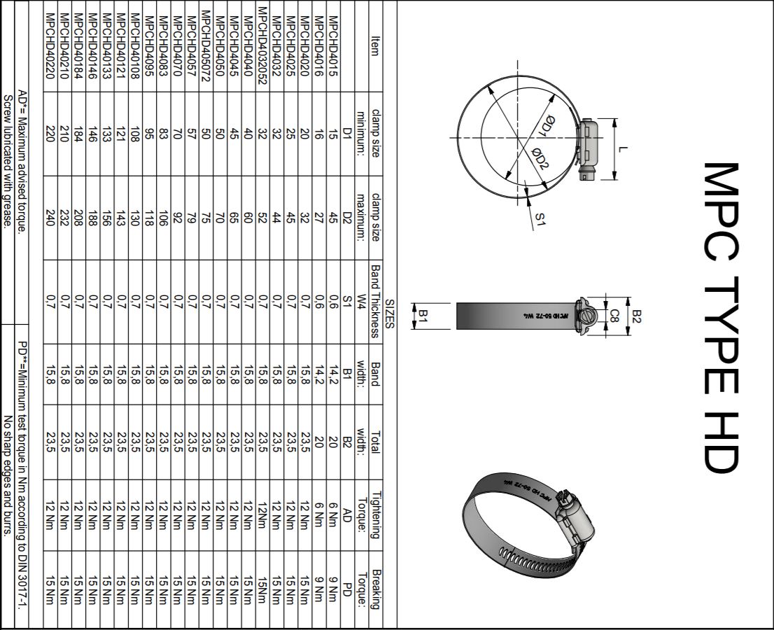 | Productsoort | MPC Industrie HD wormschroef slangklem RVS 304 |