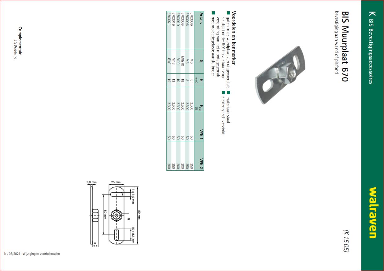 BIS stalen muurplaat type 670 elektrolitisch verzinkt bi.dr. M6