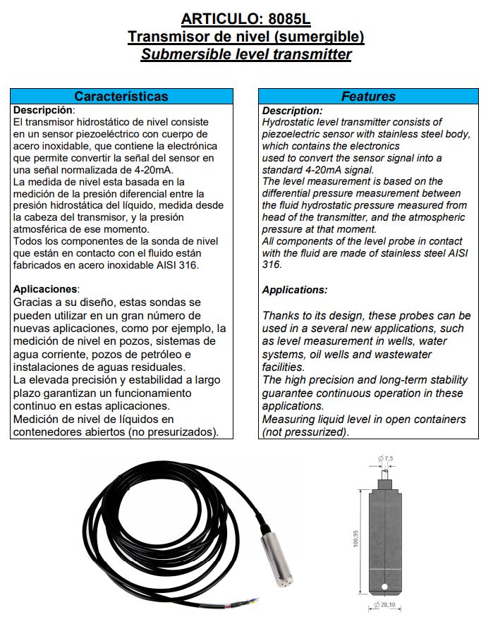 Toepassingen: Dankzij het ontwerp kunnen deze sondes dat zijn gebruikt in een aantal nieuwe toepassingen, zoals als niveaumeting in putten, water systemen en afvalwater faciliteiten.[/br]