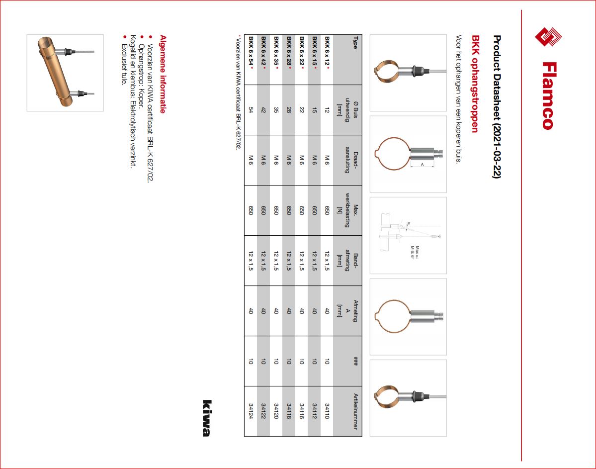 Flamco ophangstrop type BKK, koperen pijpbeugel, M6 x 28 mm, type nr. 34118, OP = OP