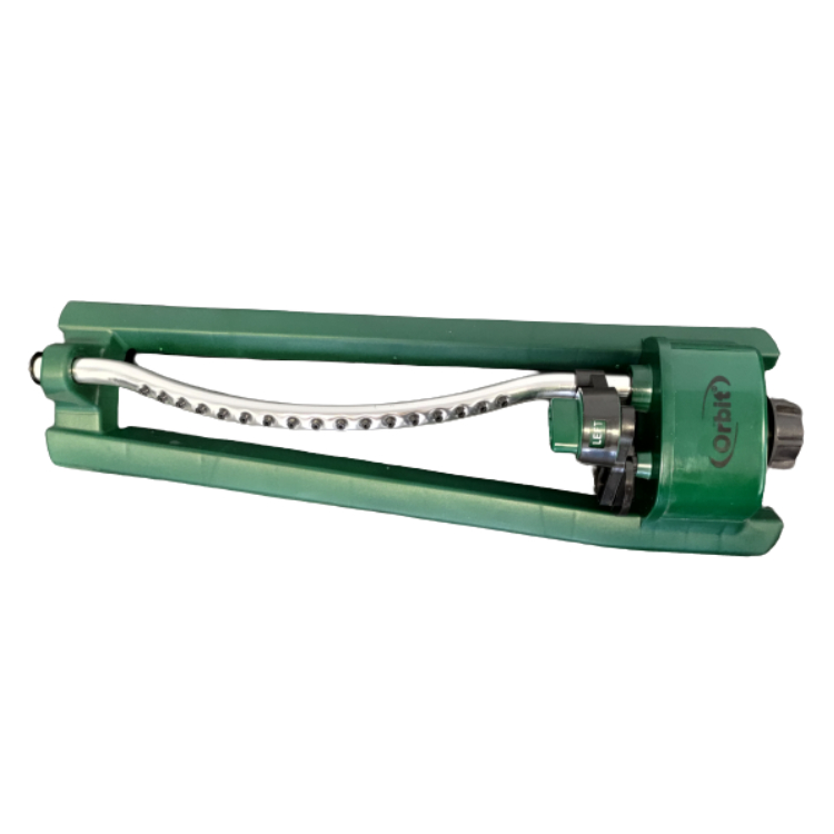 Orbit zwenksproeier type 96005, capp. 279 m2 sproeioppervlak, 4- standen instelbaar (centraal, links, rechts en volledig traject), aansluiting 3/4" bi.dr. met kraanstekker, max. werkdruk 3,0 bar