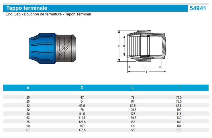 PA BLULINE PLUS PP, Drinkwater PE klemkoppeling, Eindkap 16 mm, 1 x klem, PN16, Kiwa, WRAS keur