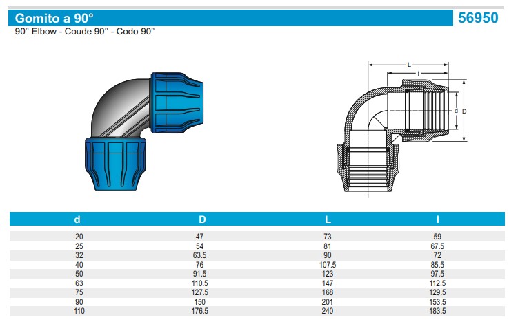PA BLULINE PLUS PP, Drinkwater PE klemkoppeling, Knie 90°, 32 x 32 mm, 2 x klem, PN16, Kiwa, WRAS keur