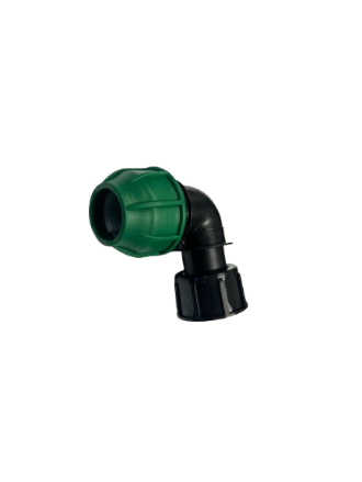 Stadex PP, Irrigatie PE klemkoppeling, Knie 90°, 32 mm x 1", klem x Wartel BSP bi.dr., PN10, groene wartel (s)