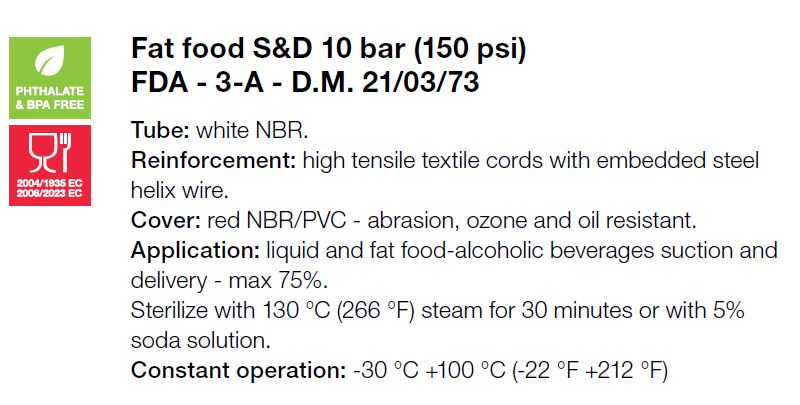 | Toepassing | Persslang en alcoholische dranken (tot 75%) . Steriliseerbaar tot 130°C voor max 30 min |