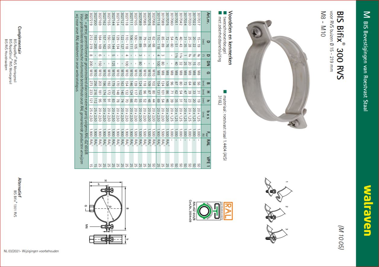 | Uitvoering | RVS 316 tweeschroeven pijpbeugel, zonder inlage |