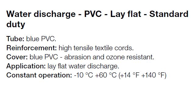 | Buitenwand slang | Blauw, PVC, slijtvast en ozonbestendig |
