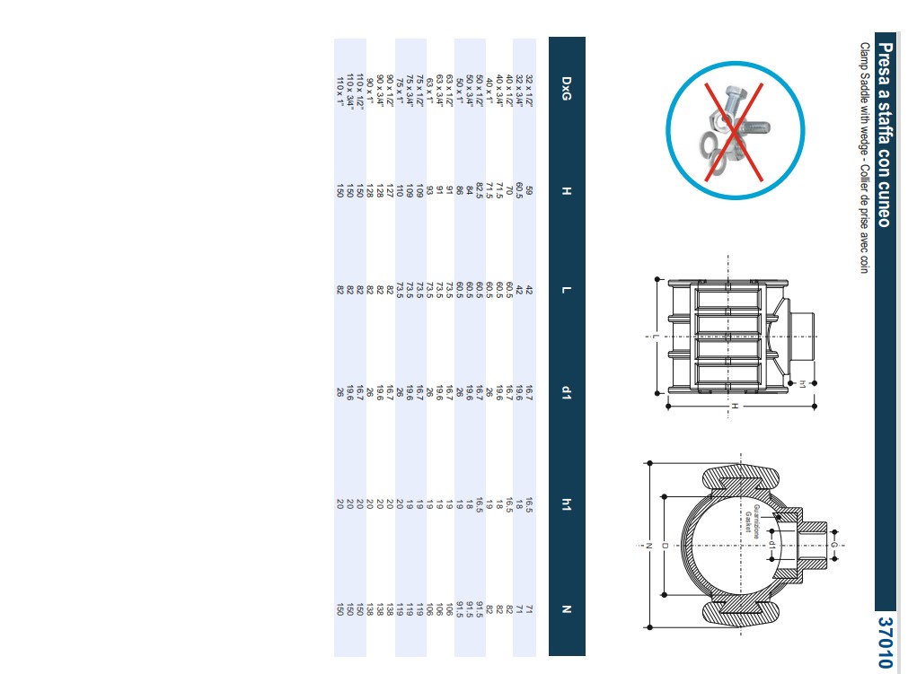 | Toepassing | Universeel aanboor/klemzadel passend op metrische (mm) PVC, PP, LDPE, MDPE, HDPE, Tyleenbuizen voor het aanboren van 90° aansluitingen op beregening, fertigatie, afvalwater, proceswater, koelwater leidingen |
