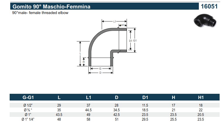 PA PP Knie 16051, 90° 1 1/4", BSP bu.dr. x bi.dr., PN10