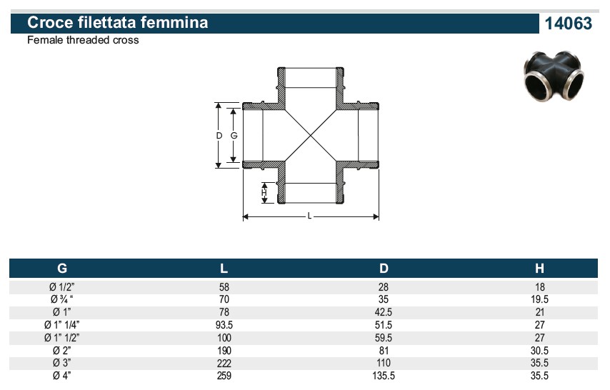 PA PP Kruis-stuk 14063, 90° 1", 4 x BSP bi.dr., PN16