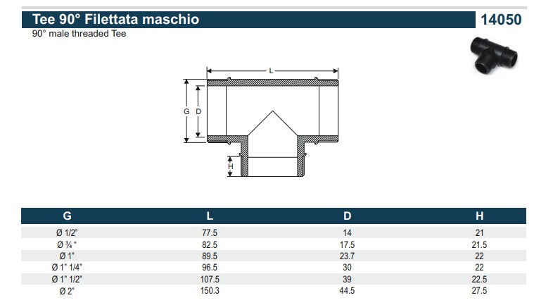 PA PP T-stuk 14050, 90° 2", 3 x BSP bu.dr., PN16