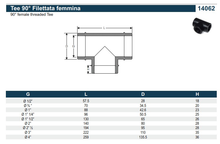 PA PP T-stuk 14062, 90° 1 1/2", 3 x BSP bi.dr., PN10