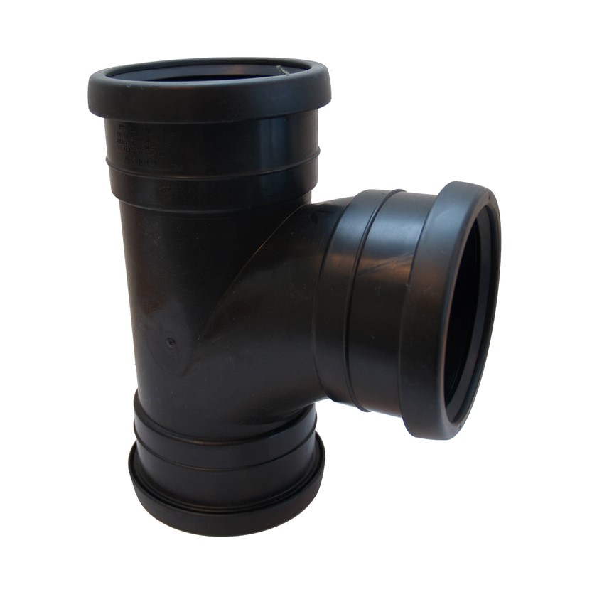 Binnenriolering PP manchetverbinding t-stuk diam. 110 x 50 mm, 90°, 3 x mof, zwart, SN4