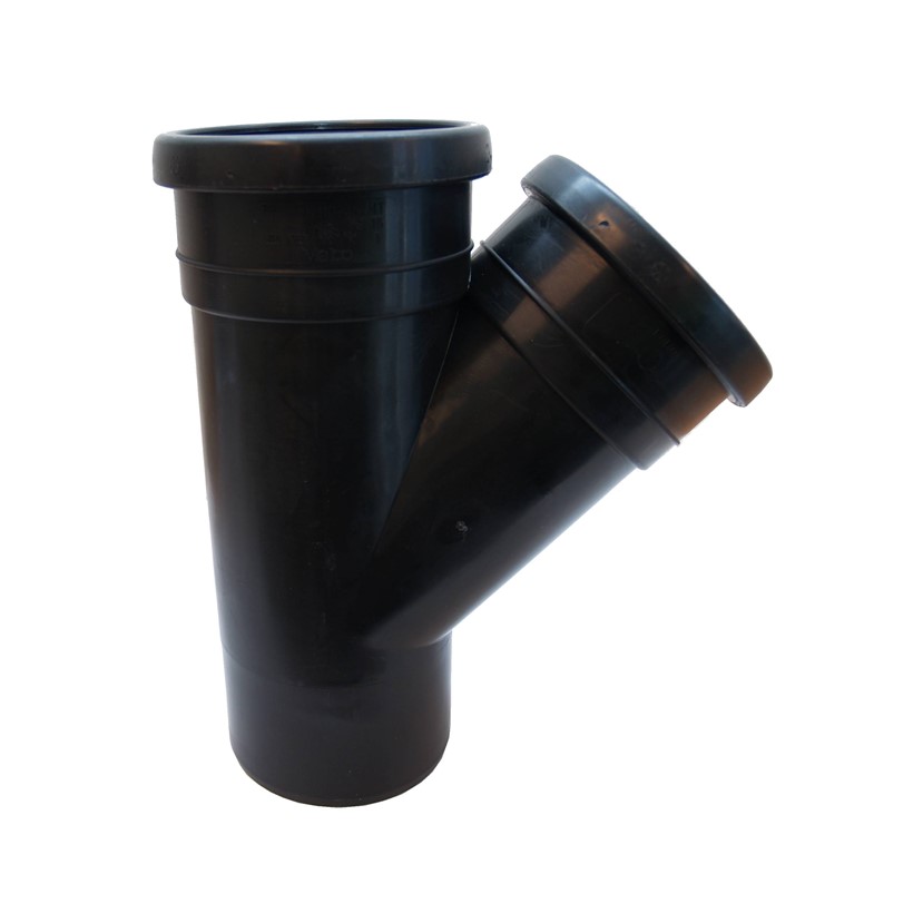 Binnenriolering PP manchetverbinding t-stuk diam. 50 x 50 mm, 45°, 2 x m/s, zwart, SN4