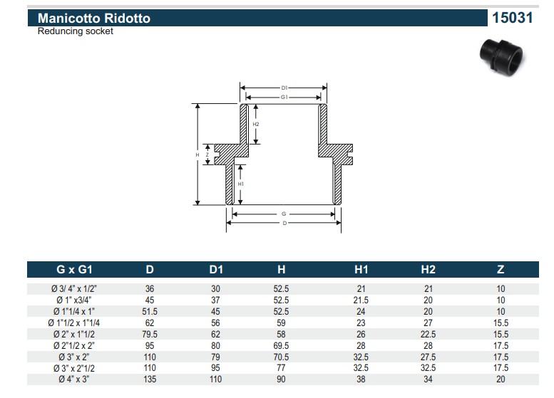 PA PP Verloopsok 15031, 3/4" x 1/2", 2 x BSP bi.dr., PN16