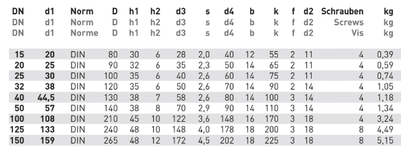 | Volgens norm (en) | ISO, DIN 2633 / EN 1092-1 |
