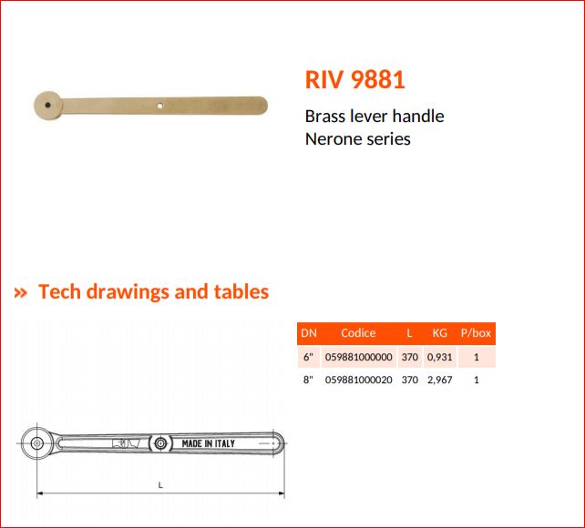 RIV Karbon 9881 messing bediening hendel voor afsluiter type: Nerone 201 en 202