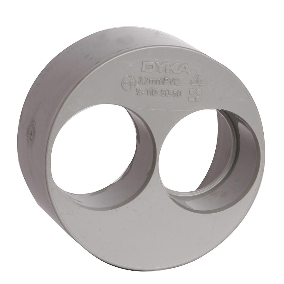 PVC-U binnenriolering dubbele lijmverloopring 110 x 50 x 50 mm, grijs