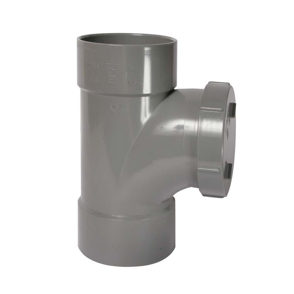 PVC-U binnenriolering lijm ontstoppingsstuk 110 mm met schroefdeksel, M/M, grijs