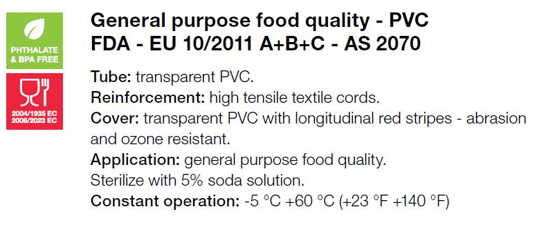 | Buitenwand slang | Transparante PVC met rode lengtestreep, slijtvast en ozonbestendig |