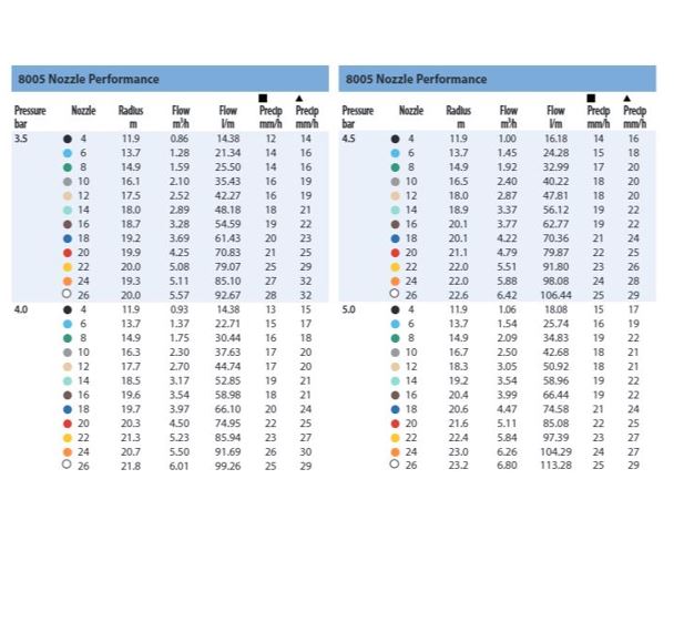 De sproeier wordt geleverd met 8 stuks regengordijn nozzles met een sproeihoek van 25°.[/br]