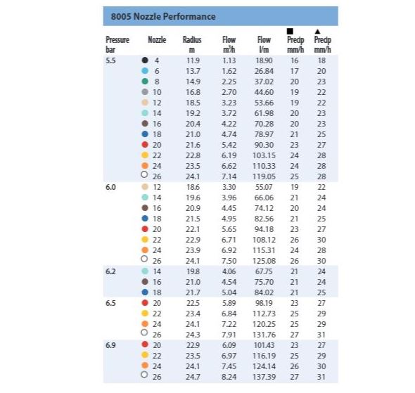 Sproeiradius: 11,9 - 24,7 meter.[/br]