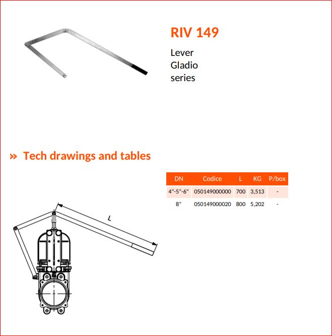 RIV Titanium 149 stalen bedieningset voor afsluiter type: Gladio 8"
