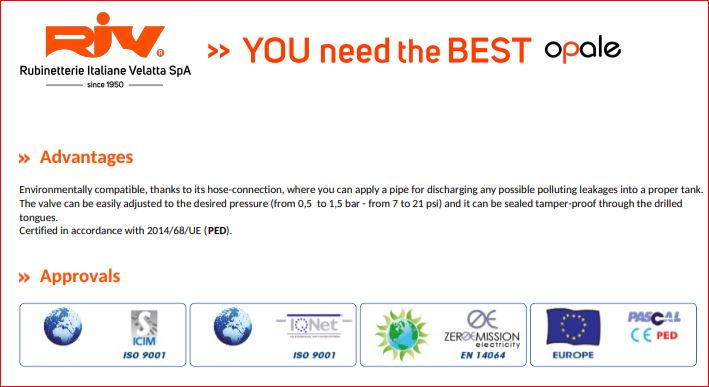 | Productsoort | Opale 250 overdruk / veiligheidventiel |