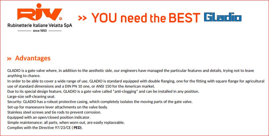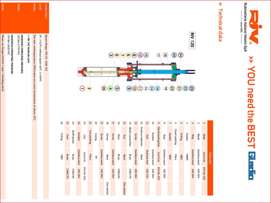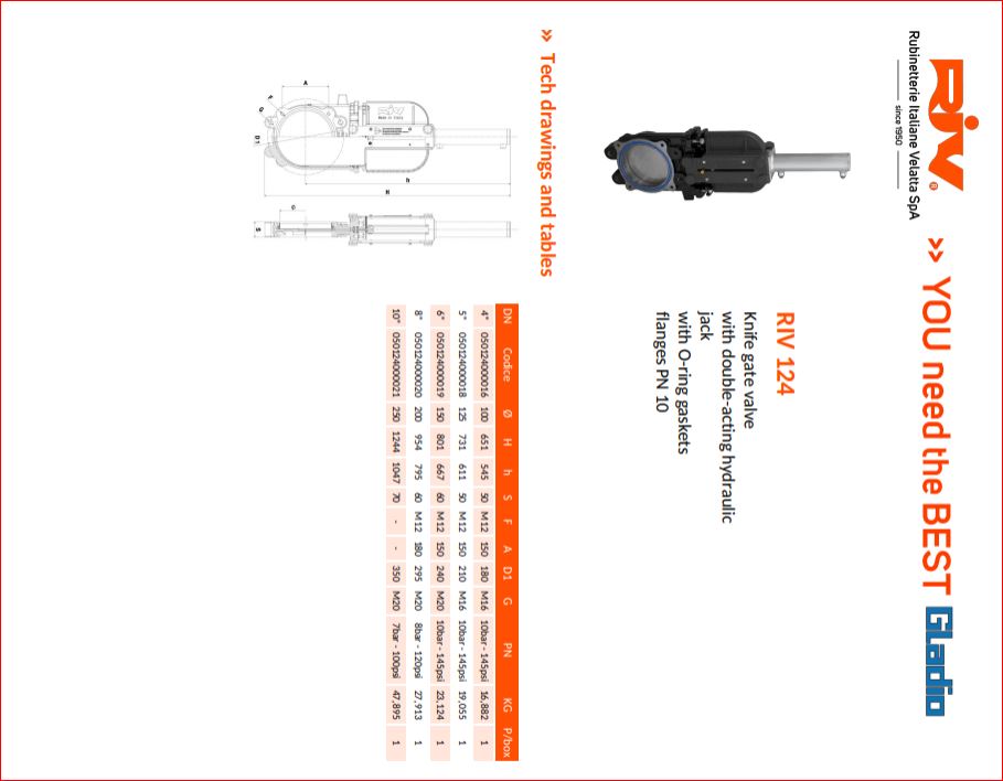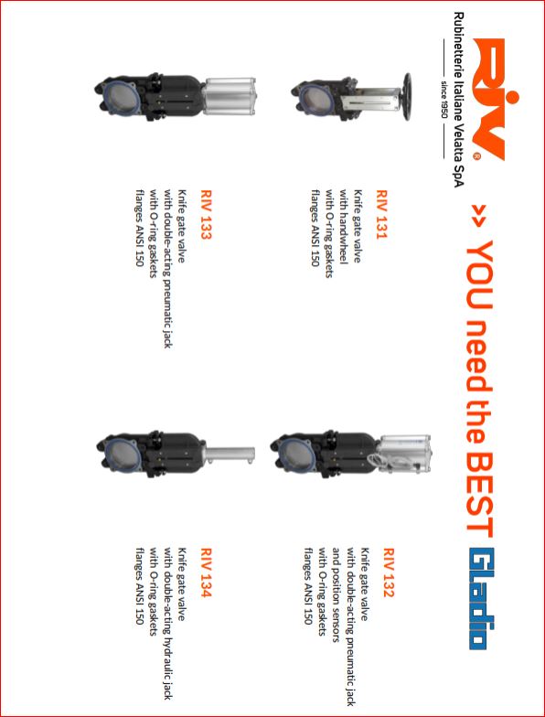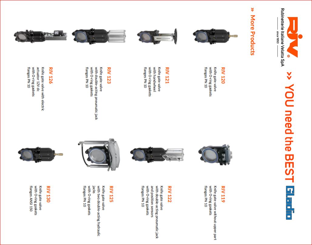 RIV levert een breed assortiment originele kwaliteit schuifafsluiters, hevel bediening armaturen, hydraulische- pneumatische enkel en dubbelwerkende cilinders, tank beveiligingen, tankvulling indicatoren, flexibele koppelingen en trechters.