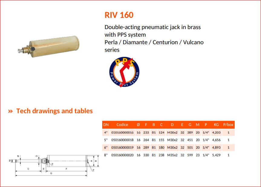 RIV Smeraldo 160, PPS, dubbelwerkende pneumatische cilinder voor afsluiter type: Perla- Diamante- Centurion- Vulcano, 4"
