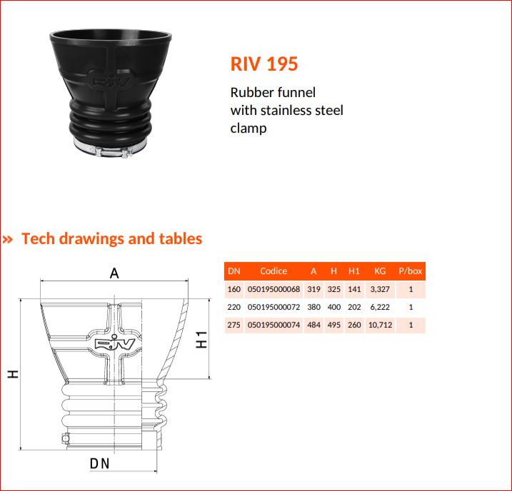 RIV Smart 195 rubber vul- afname trechter, 160 mm, met RVS klemband
