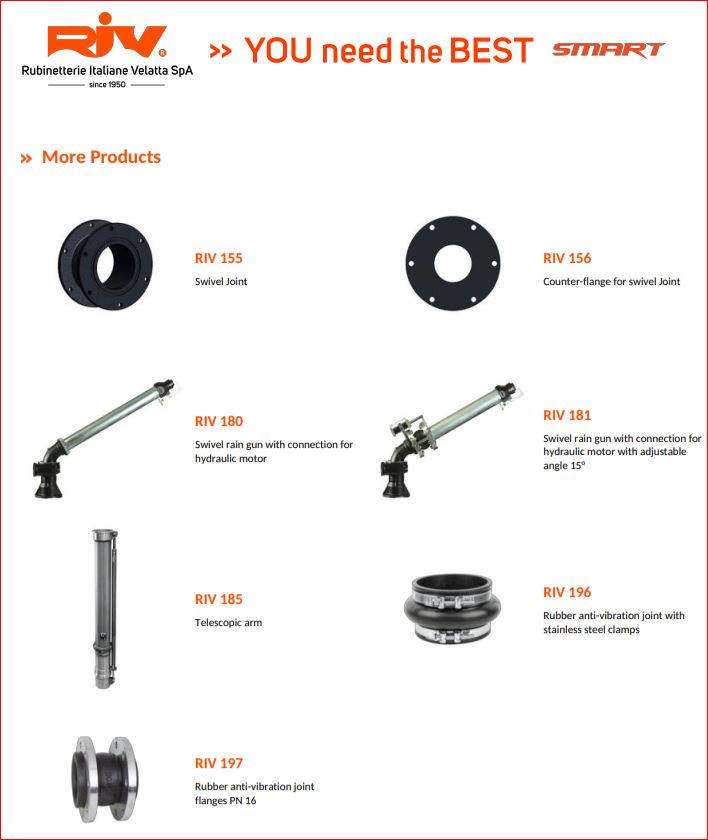 RIV levert een breed assortiment originele kwaliteit schuifafsluiters, hevel bediening armaturen, hydraulische- pneumatische enkel en dubbelwerkende cilinders, tank beveiligingen, tankvulling indicatoren, flexibele koppelingen en trechters.