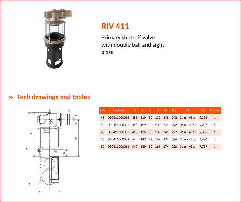RIV Gold 411 vacuümtank overvulbescherming afsluiter, dubbele vlotterbal, inspectieglas en slangtule 50 mm
