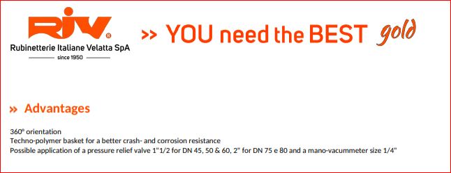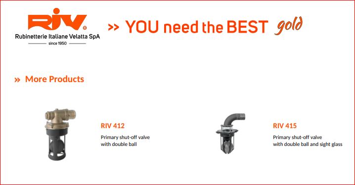 RIV levert een breed assortiment originele kwaliteit schuifafsluiters, hevel bediening armaturen, hydraulische- pneumatische enkel en dubbelwerkende cilinders, tank beveiligingen, tankvulling indicatoren, flexibele koppelingen en trechters.