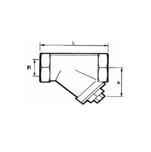 RVS 316 vuilvanger 2 x 1/2" bi.dr. PN 40, zeef RVS 316, dichting PTFE, 500 µm