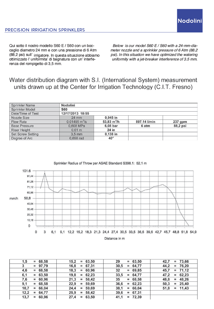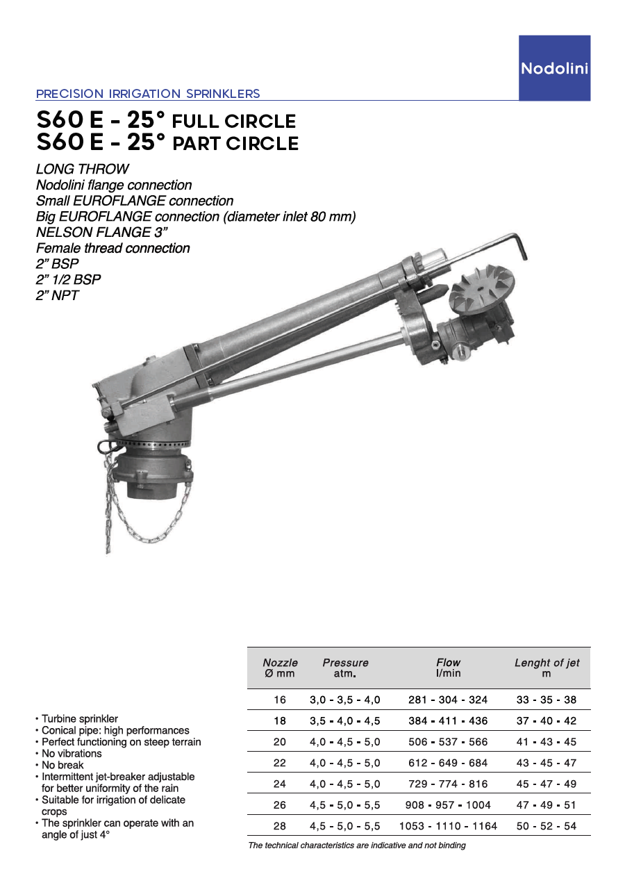 Nodolini professionele hogedruk sproeier type S60E - 25°, sector, DIN DN 50 FLENS, BSP-F bi. dr., 25°, incl. 7 nozzles