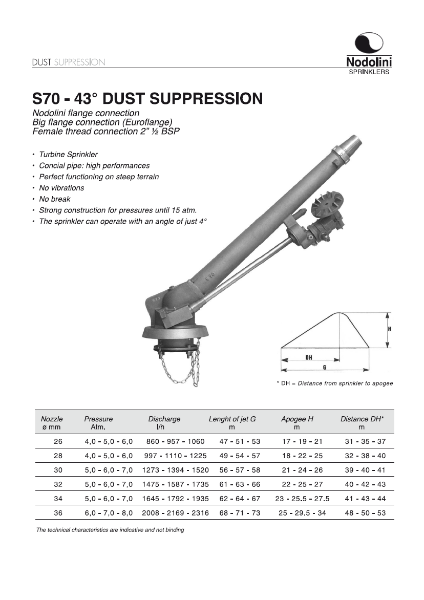 | Type / Serie | Nodolini S70 - 43° DUST SUPPRESSION |