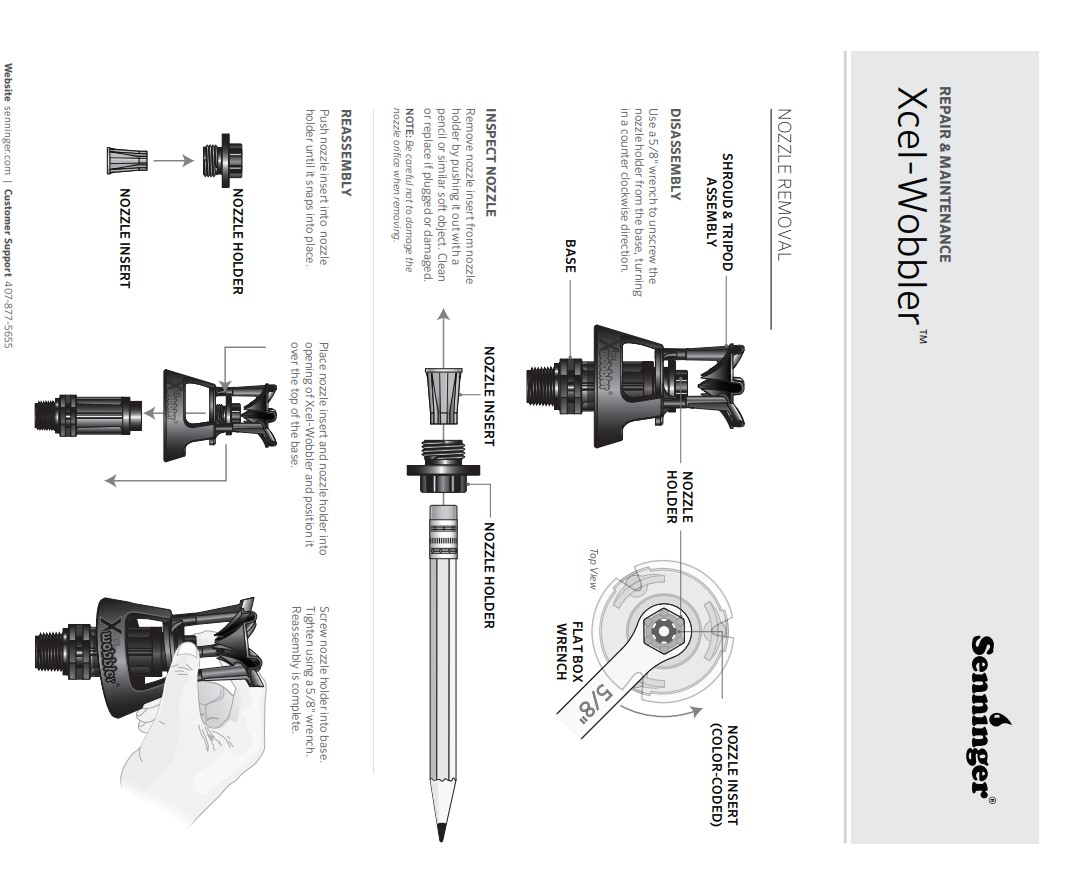 Senninger vervanging nozzles serie NZIN De serie NZIN nozzle is snel te verwisselen, duurzaam en dragen bij aan een optimale uniformiteit. Per diameter heeft de nozzle een kleur met kleur code (bijv. Pink = nr. 2). De nozzles zijn toepasbaar voor de sproeier types: • Xcel-Wobler • Wobbler • Smooth Drive • Impact: 20, 30, 40 en 50 Raadpleeg de Technische gegevens per sproeier type welk model (kleur nozzle) toepasbaar is binnen de afgifte capaciteit van de betreffende sproeier.
