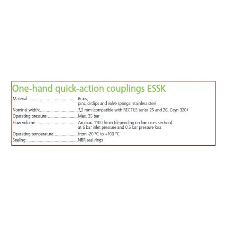 | Uitvoering | ESSK, messing 35 bar insteekkoppeling - bi.dr. |