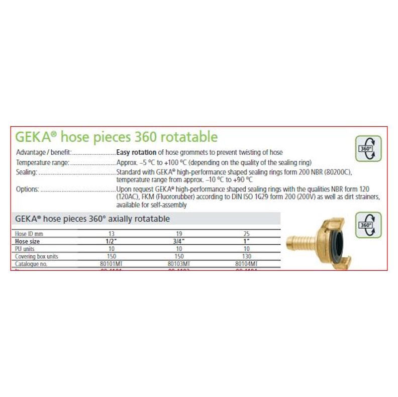 Originele messing Geka snelkoppeling, met draaibare slangtule 1/2" - 13 mm