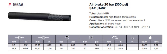Alfagomma, Air brake slang, Textielinlagen - 20 bar, 14.5 x 25.50 mm - 37/64", afname per mtr., type 166AA