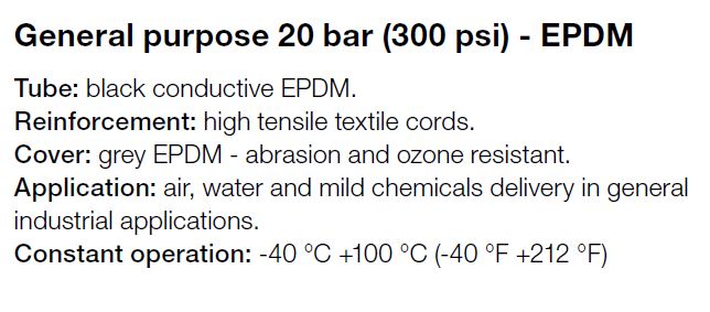 | Buitenwand slang | Grijs, EPDM, slijtvast en ozonbestendig |
